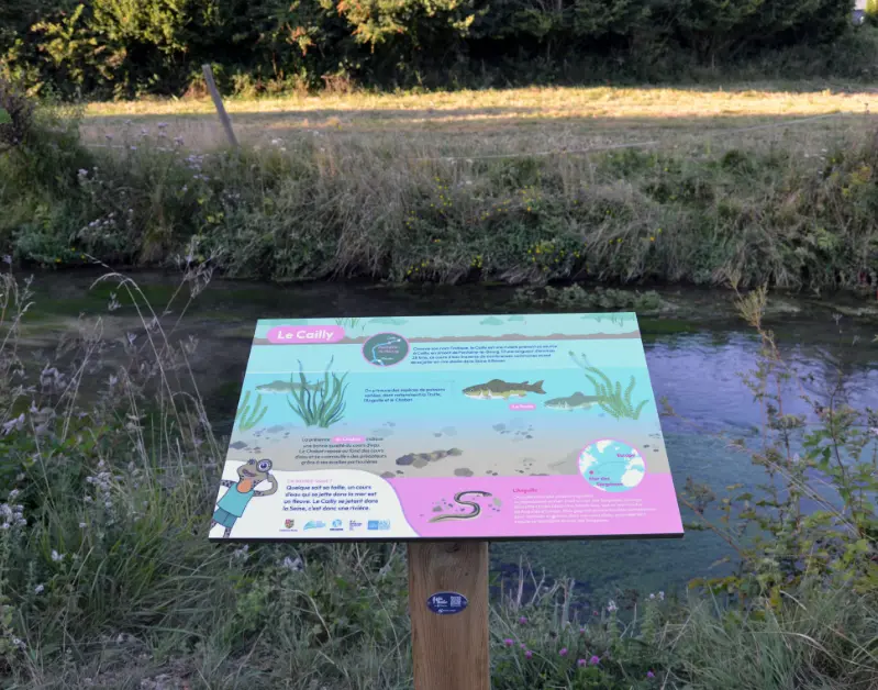 Pour mettre en avant les caractéristiques de l'espace de la Roselière, j'ai conçu 8 panneaux didactiques illustrés, qui parsèment le sentier de promenade. En véritable écrin de verdure et de paix, l'espace de la Roselière, bordé par le Cailly, est un lieu riche en biodiversité, qu'il est nécessaire de préserver.